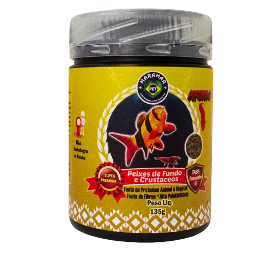 Peixes de Fundo & Crustáceos possui um tipo de processamento desenvolvido exclusivamente pela Maramar , que faz com que o tabs não esfarele em contato com a água, diminuindo muito a poluição no aquário.