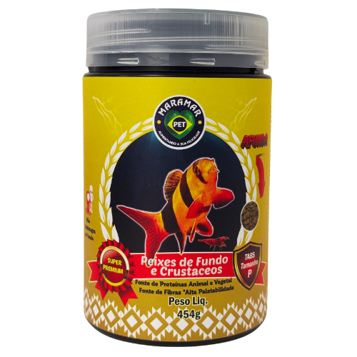 Peixes de Fundo & Crustáceos possui um tipo de processamento desenvolvido exclusivamente pela Maramar , que faz com que o tabs não esfarele em contato com a água, diminuindo muito a poluição no aquário.